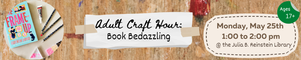 The theme for the Adult Craft Hour this month is Book Bedazzling.