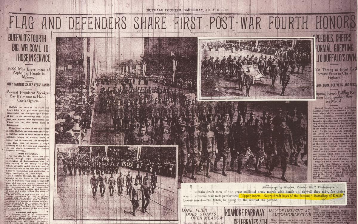 On the 4th of July in 1919, Buffalo servicemen, including members of the Battalion and 3,000 other returning soldiers took part in a triple Welcome Home celebration: Independence Day, the signing of the peace treaty, and the safe return of our honorable men.
