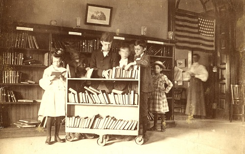 For its grand opening, the library sent out announcements to local schools and newspapers, as well as posted signs in the many other places that children might gather. Opening June 29, 1896, attendance was initially low, roughly 40 to 75 children a day, but by October, with hundreds in attendance daily, the Children’s Room had to be moved to a larger space! The demand for fairy tales, poetry and stories kept the staff busy, and the ever popular scrapbooks full of pictures were in continuous use, as they were so helpful in holding the attentions of “these restless little persons.”* By the end of the first year, the book collection had grown to over 7,000 volumes, and children were now allowed to borrow and take the books home.