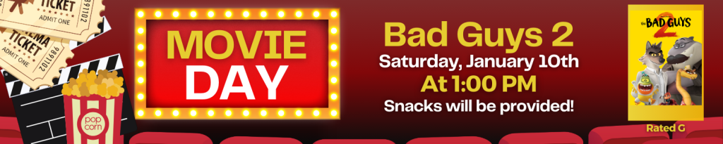 Movie Day: Bad Guys 2 - Saturday, January 10th at 1:00pm