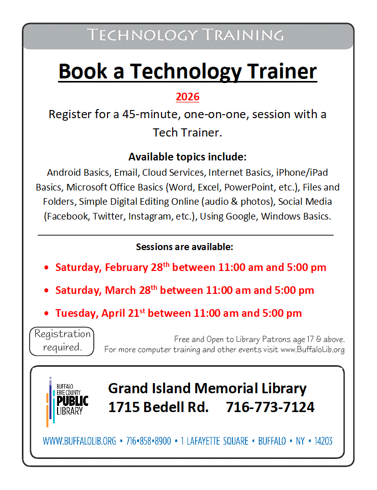 Special thanks to the Grand Island Rotary, Cinderella Isle Garden Club, the Town of Grand Island, the Friends of the Grand Island Memorial Library and the Grand Island Community for their support on this project.