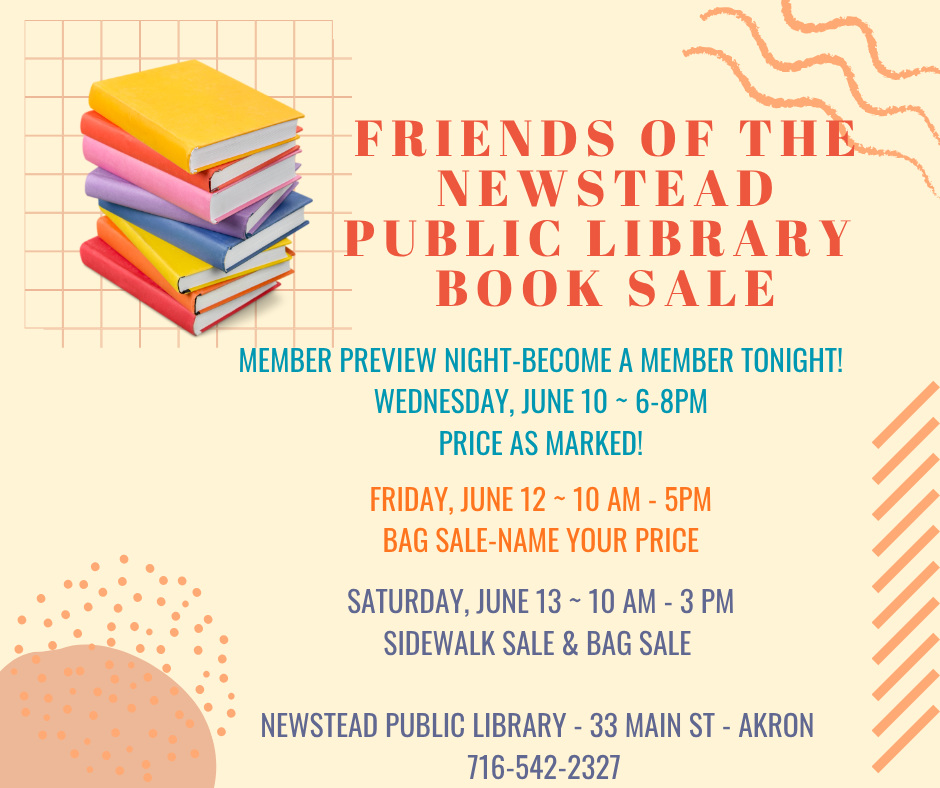 We have a very supportive Friends of the Library group that sponsors a used book sale in the Spring and Fall. There are three ways to become involved as a Friend: (1) as a member, (2) as a donor, and/or (3) as a volunteer. Please contact the Newstead Public Library for more information on how to become involved.