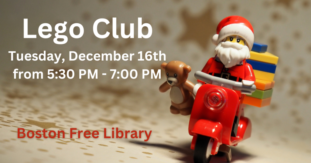 The Boston Free Library has the following items available for 7-day loan period. Must be checked out on a valid adult library card and picked up and returned at the Boston Library during open hours.