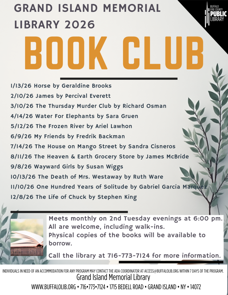Special thanks to the Grand Island Rotary, Cinderella Isle Garden Club, the Town of Grand Island, the Friends of the Grand Island Memorial Library and the Grand Island Community for their support on this project.