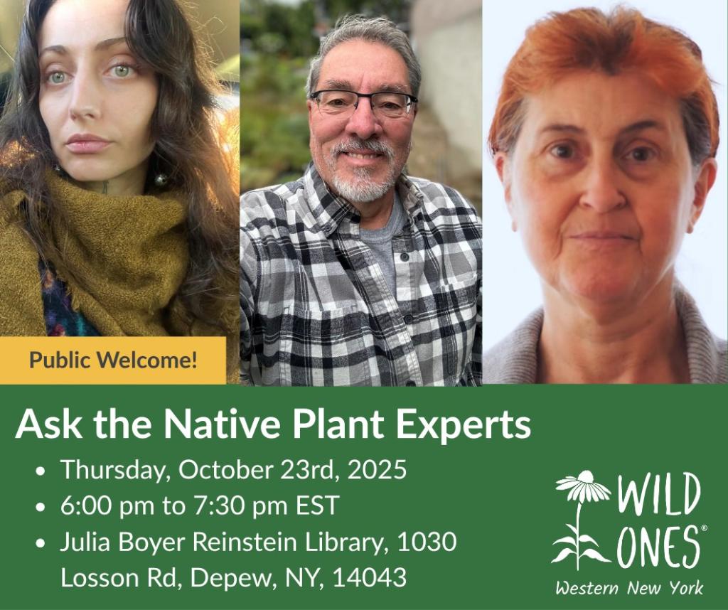 Join Wild Ones Western New York on Thursday, October 23 at the Julia Boyer Reinstein Library for an inspiring evening where we assemble the panel and YOU ask all of your burning questions!