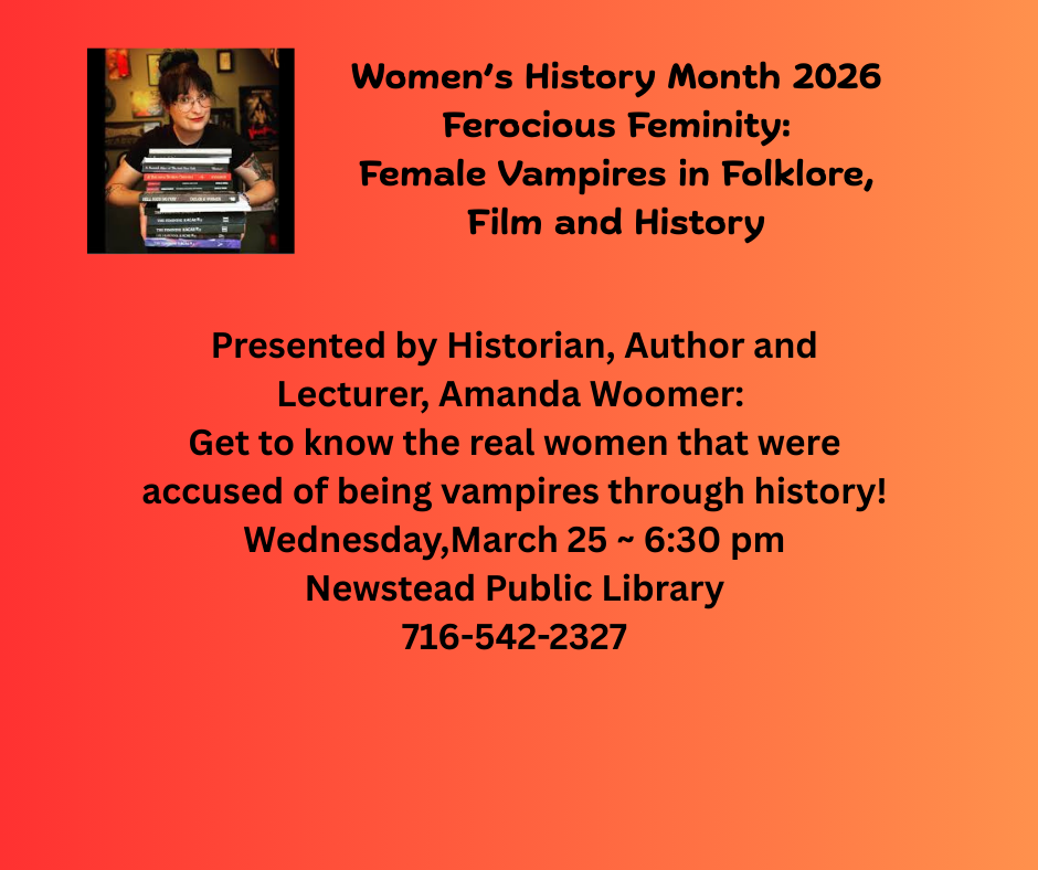 Virtual Programs - Join us for virtual FUN!!! Videos can be found on the Newstead Public Library Facebook page and YouTube channel.